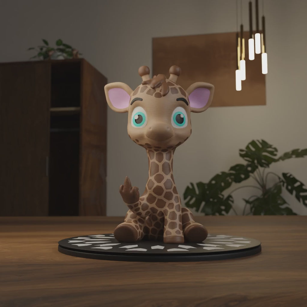 This is Milo the Giraffe 🦒. With his big bright eyes and innocent smile, Milo looks like the sweetest little guy around. But don’t be fooled—behind that cute face is a giraffe with opinions, and he’s not afraid to show them. His favorite way? One cheeky finger, held high with pride.